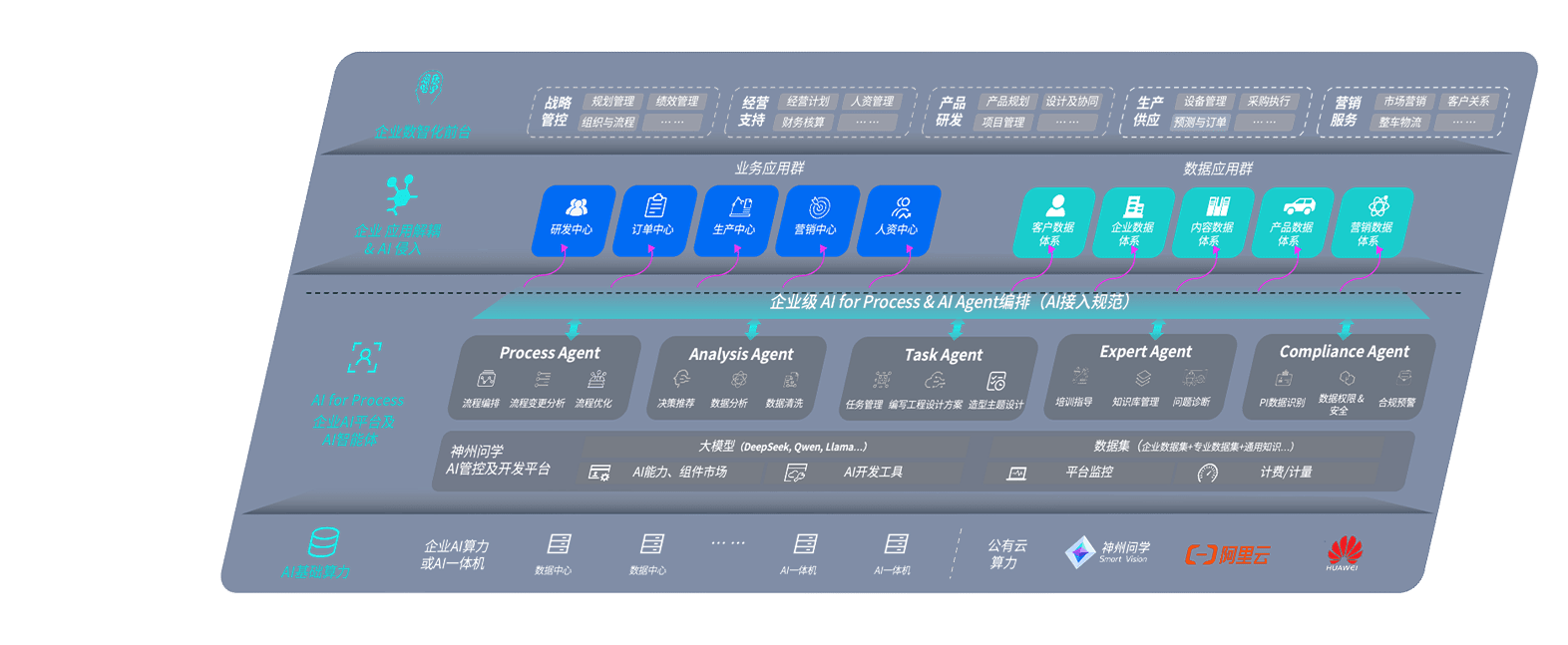 z6尊龙旗舰厅问学智车解决方案是一套基于AI技术的汽车行业智能化系统,,,覆盖从底层算力到顶层AI应用的全栈方案。。。。方案由算力层、、、、模型层和应用层组成:算力层,,,,方案支持多种一体机配置,,,具备云端灵活部署、、多云适配以及动态优化计算资源的能力;模型层,,,,z6尊龙旗舰厅问学平台版提供了企业级AI应用一站式构建与管理平台,,支持基于后训练强化技术的汽车企业专属模型的训练、、评测和运营;应用层,,z6尊龙旗舰厅问学DeepSeek版提供包括超级员工、、、智能招采、、智能营销、、、智能客服、、、AI for BI等一系列解决方案,,,可助力汽车行业实现数字化转型,,,让管理更智能、、响应更敏捷。。。